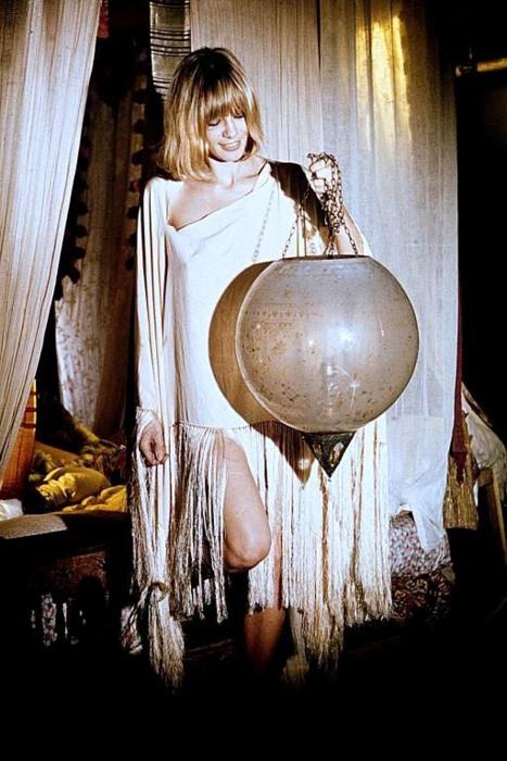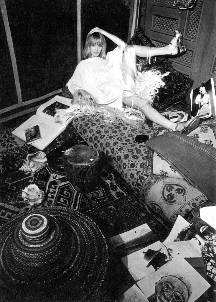 Anita Pallemberg defines boho rock star cool. She truly was the first great Rock n’ Roll muse and style icon. It’s impossible to calculate her influence on today’s fashion as it is just so vast. From floppy hats, wide brim fedoras, t-shirt dresses, to ethnic tunics and jewelry, furs, or layering multi patterns and fabrics… the list just goes on. Anita here with Jagger’s girl, Marianne Faithful. Anita embarked on a relationship with guitarist Brian Jones, with whom she spent two years in a haze of drugs and passion. The couple were Carnaby Street fashion plates and often dressed alike. Fellow Rolling Stone band member, Keith Richards, in 1967 on a trip to Morocco, took her away. Keith and Anita’s subsequent decade-plus relationship was well documented, the two sharing love, wardrobes, narcotics, good looks and an attitude so cool that the devil may even care. Anita Pallemberg, Keith Richards and Gram Parsons from the Birds at Joshua Tree, 1969. Anita Pallemberg, Keith Richards, Mick Jagger and Marianne Faithfull at Stonehenge, April 1968. Often deemed “the sixth Stone”, Anita would prove to be a big influence on the group, evolving the way they looked, from tatty suits to furs and feathers, and influencing the way they sounded. She was the inspiration for tracks like “Gimme Shelter” and “You Got The Silver”. She plays host to a sizable filmography that begins with 1967’s German film A Degree of Murder, and has seen such highlights like the cult classic Barbarella, 1968, with Jane Fonda, and Performance, 1970. Performance, with Mick Jagger, was a highly controversial film for its content on drugs, nudity and violence. Mord und Totschlag, A Degree of Murder. 1967 West German film, starring Anita Pallemberg and directed by Volker Schlöndorff. The film is widely recognised because of the soundtrack composed, produced, arranged, and played by Brian Jones, Anita’s boyfriend at the time. In Paco Rabbane’s designs with Jane Fonda as the Black Queen in the film Barbarella. 1968. Performance. Directed by Donald Cammell and Nicolas Roeg, starring James Fox and Mick Jagger. The film was produced in 1968 but not released until 1970.